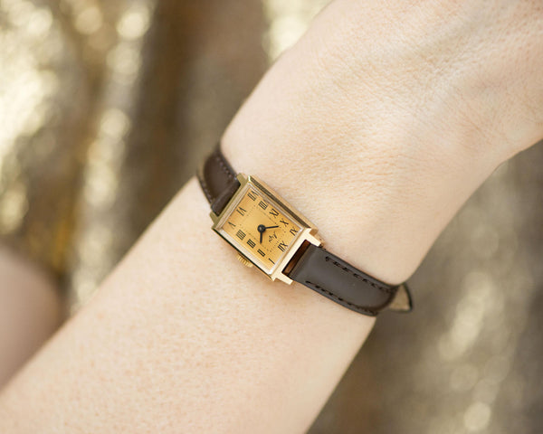 Women watch gold shade unused Glory, vintage wristwatch for women rare jewelry, wristwatch for lady classic gift, new premium leather strap